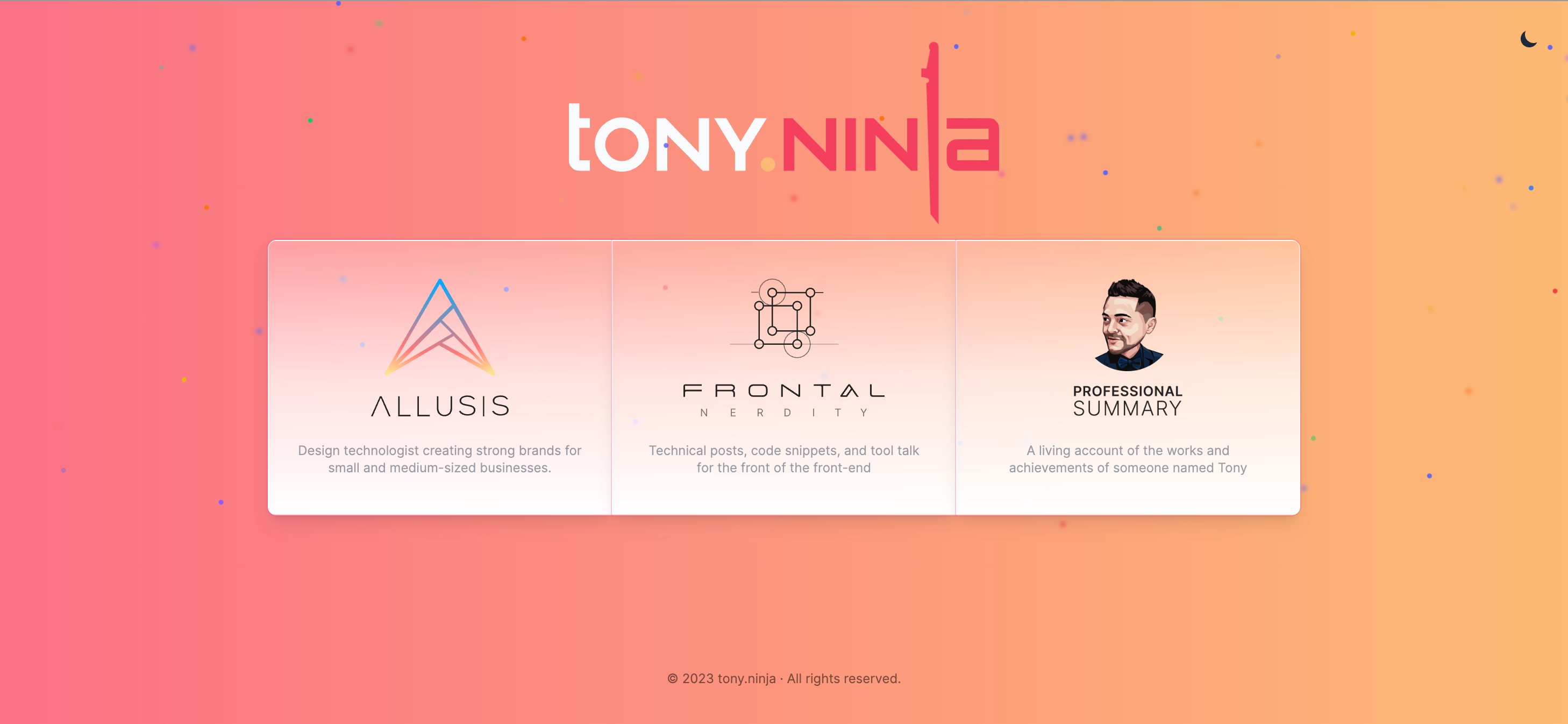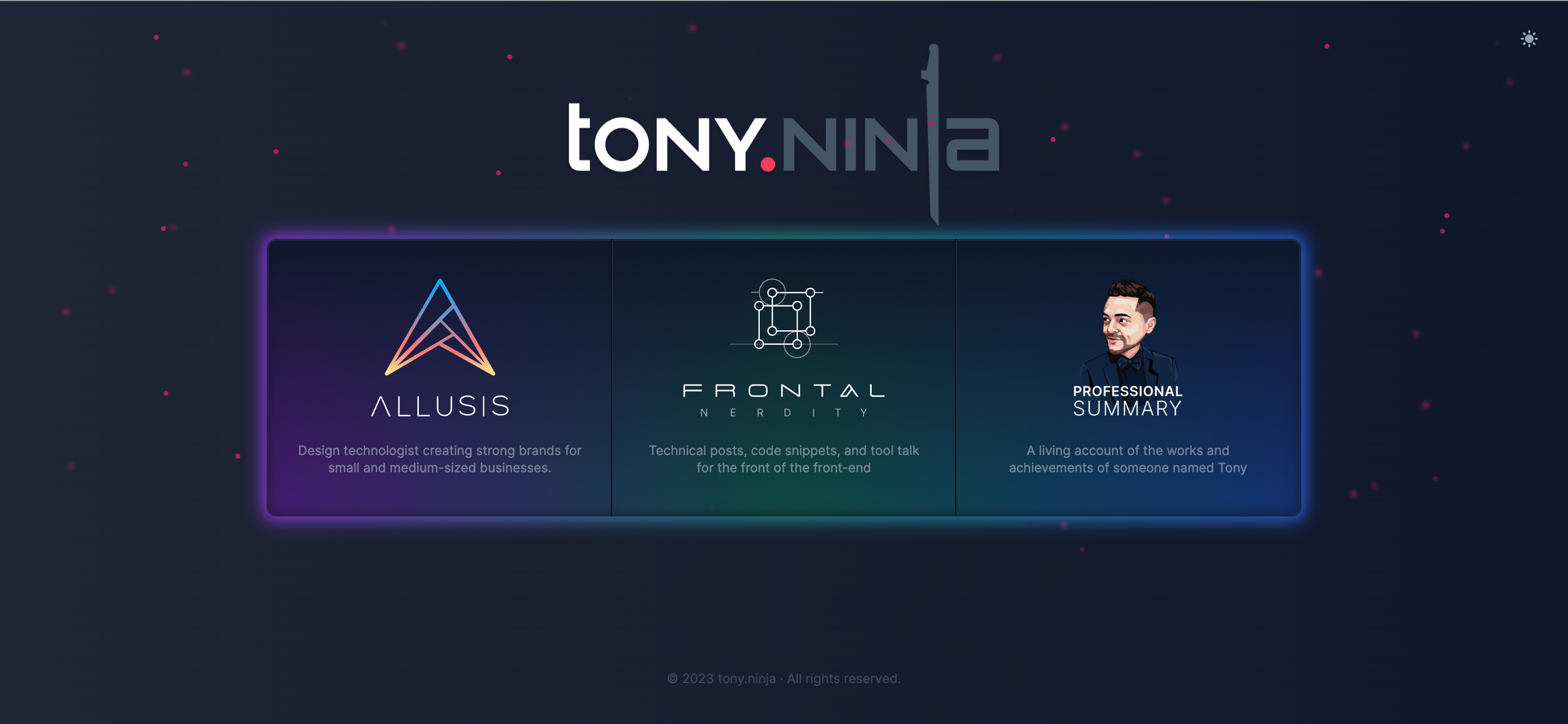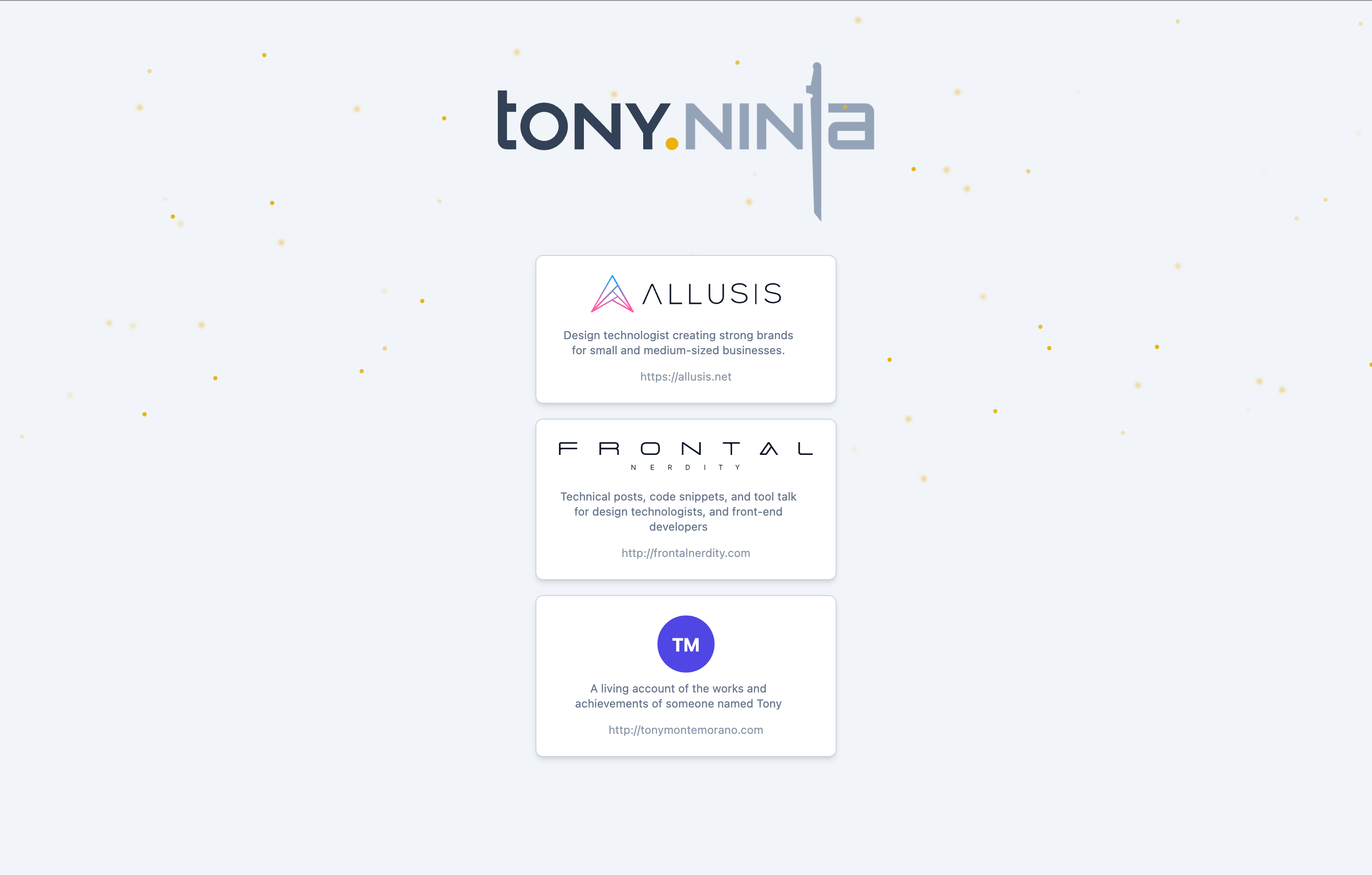A simple and accessible website with a short URL and a little flair to be given to personal and professional contacts in the web industry.